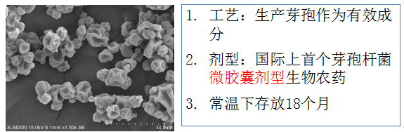 微生物包裹在微膠囊內(nèi),抗逆性強,貨架期長,效果穩(wěn)定;克服了生物農(nóng)藥常溫下不能長期存放的技術瓶頸。